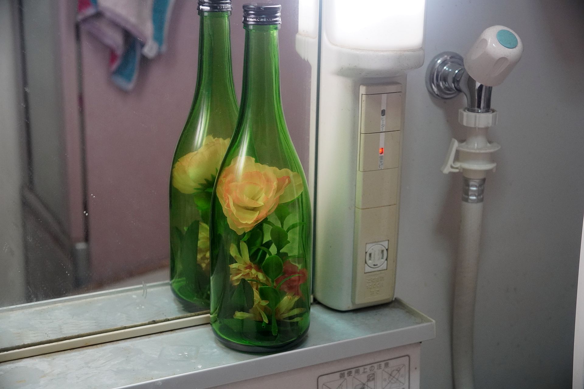 身近なものでプリザーブドフラワー10今回は土産に持った焼酎の瓶を使用。遮光用の色付きです。見た目がシックになって好きなのですが、シックさを写真に捉えることができなくて歯がゆいところはありますまあまあうまくできたかと