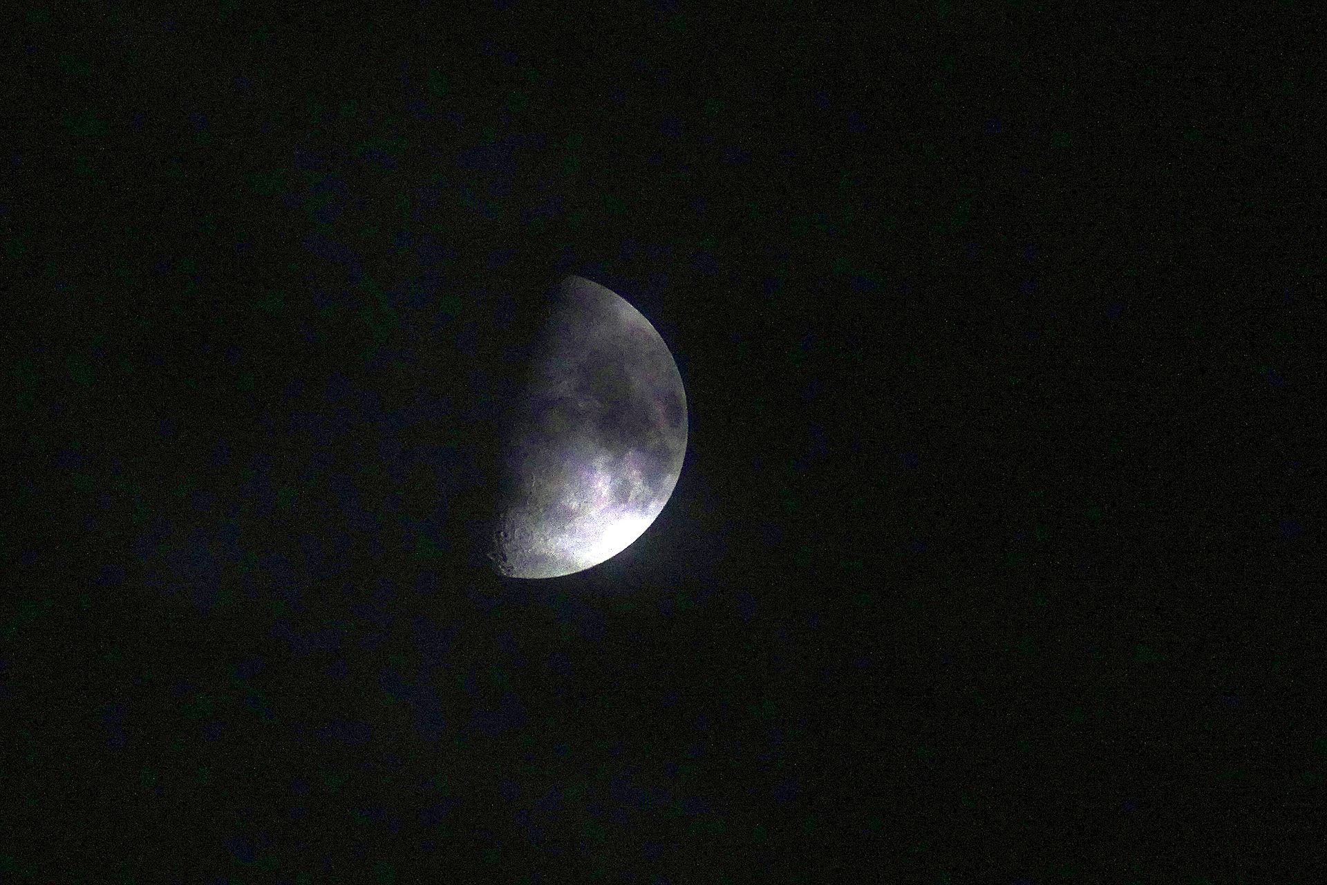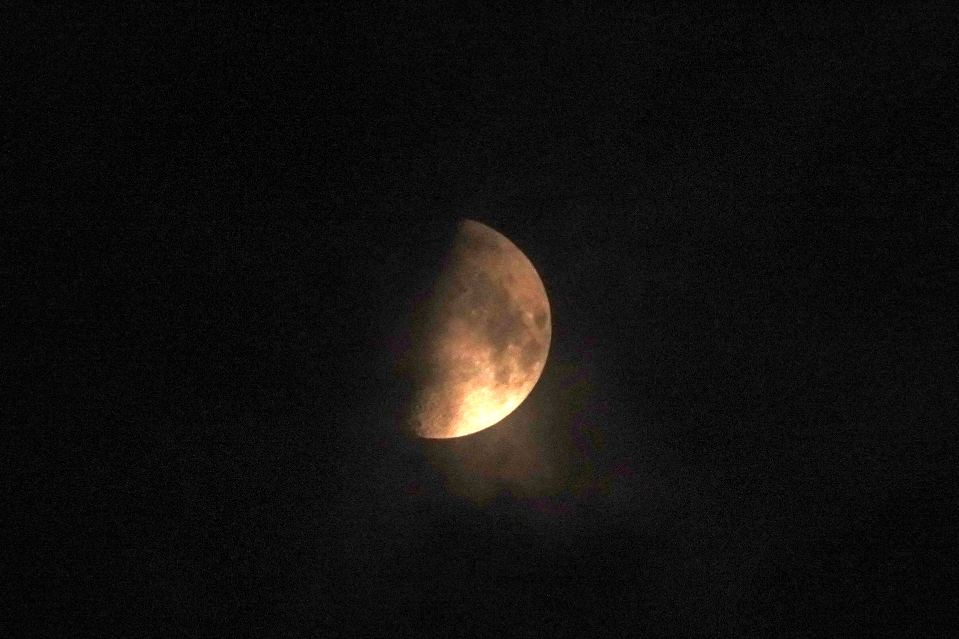 雲の切れ間から時折顔を覗かせる、半月を撮影
