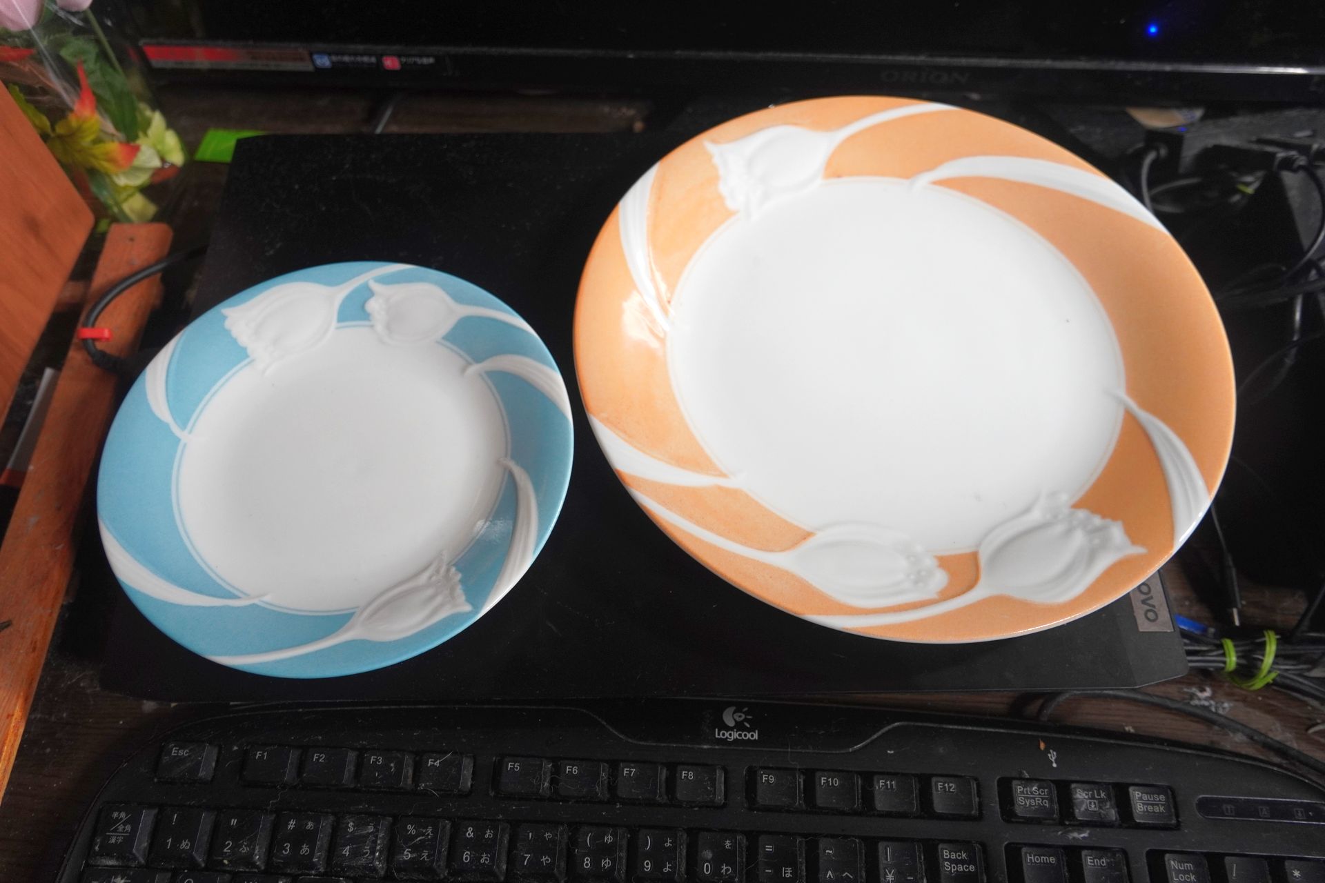 主に中皿。淵が青の二種類は二枚ずつ買ってます。チューリップのセットの分は普段の私なら買わないと思いますが、使ってもいいかなと思い購入・パスタとサラダでランチに使えそう