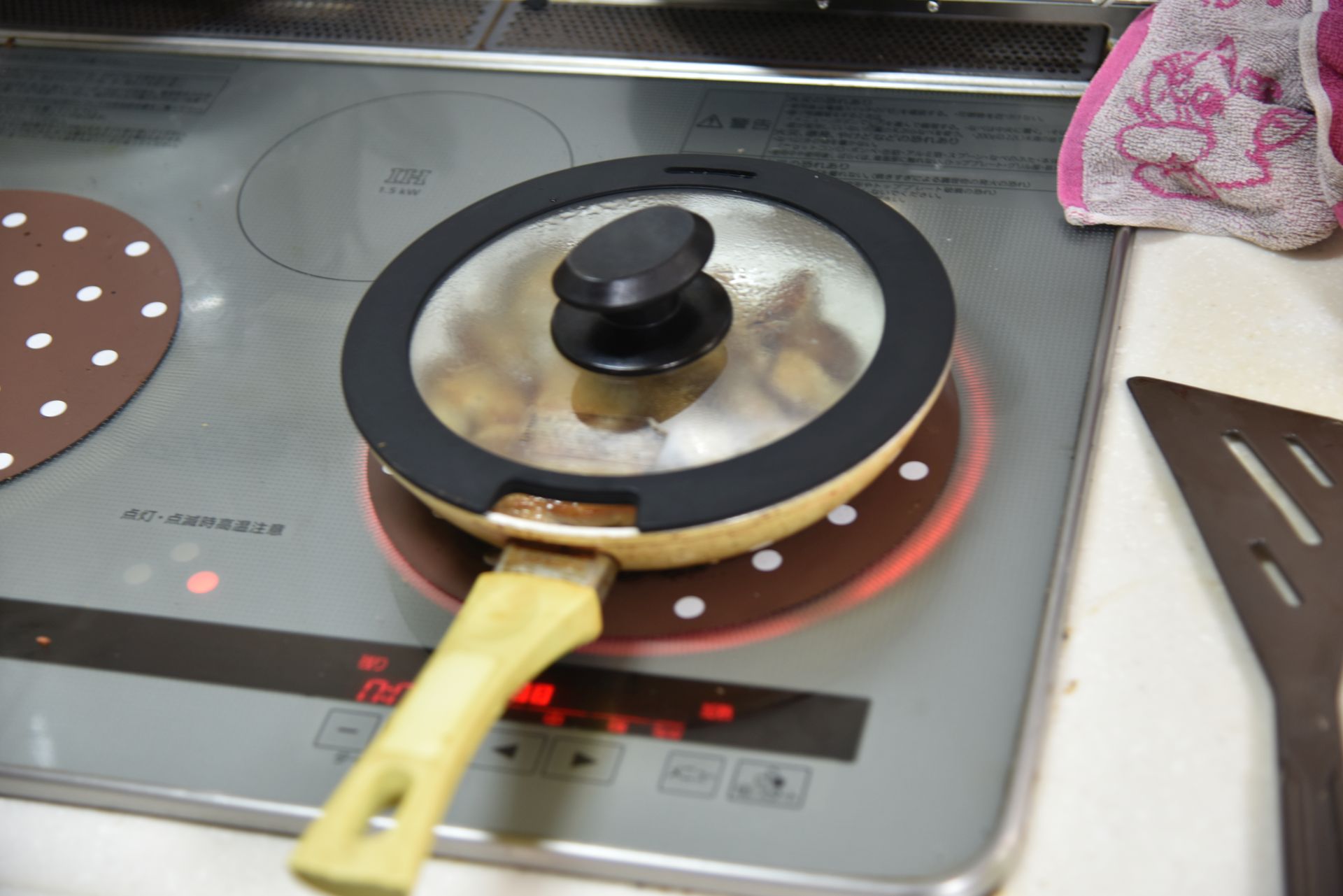 干し終わったら表面に焦げ目をつけて、5分蒸し焼きで完成です