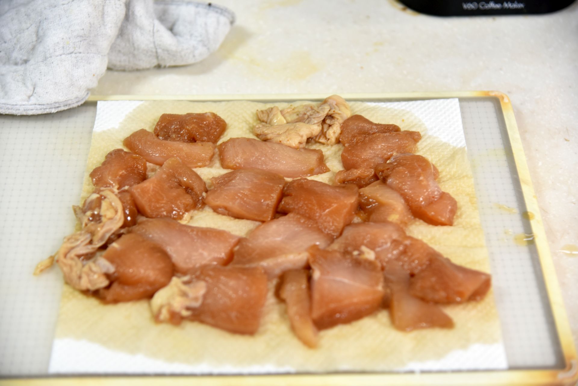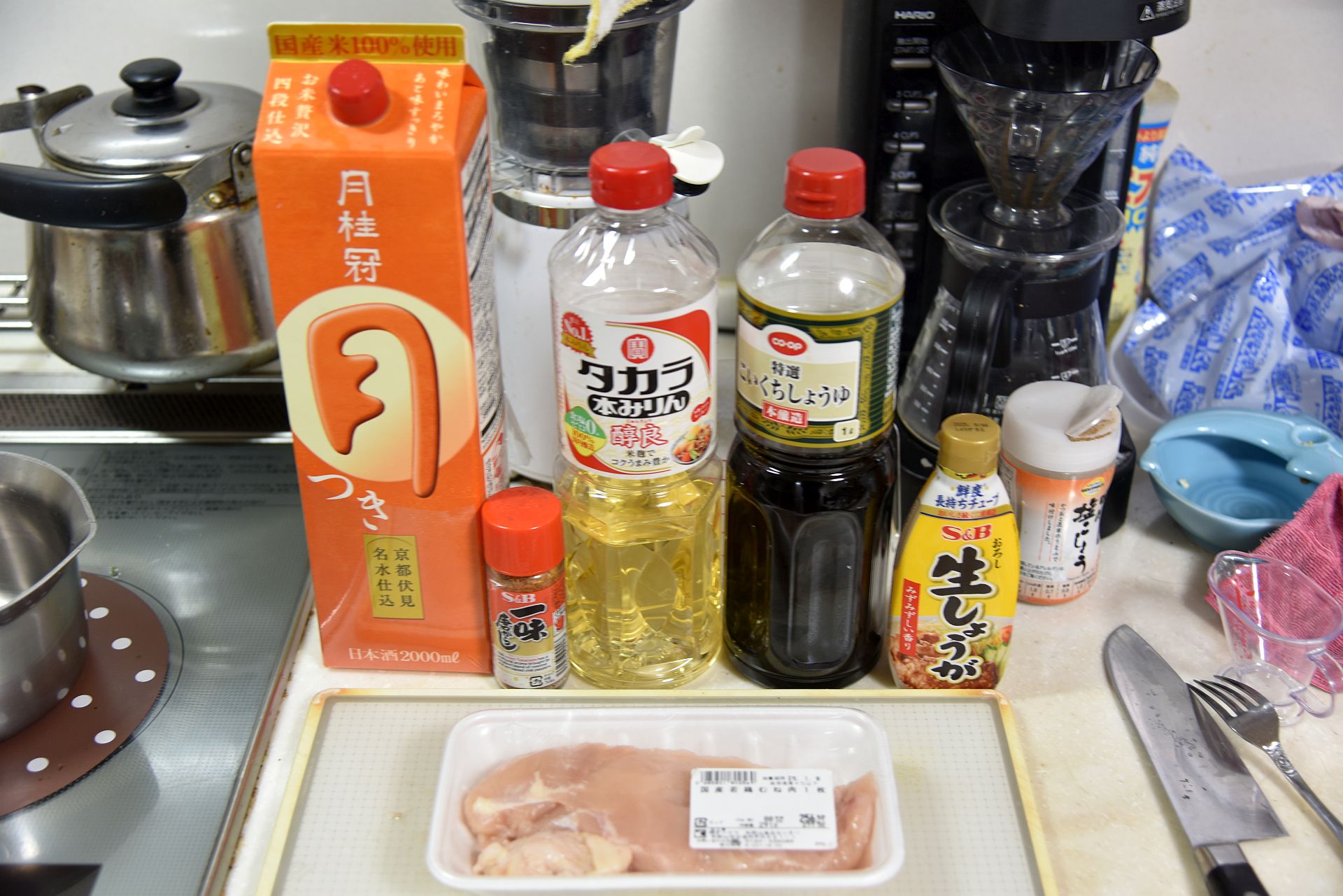 むね肉・・・日本酒、醤油、みりん、ショウガ、一味