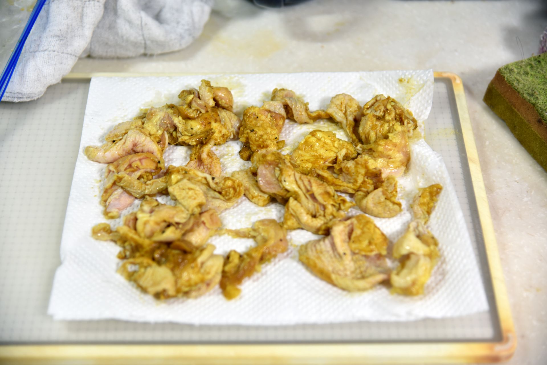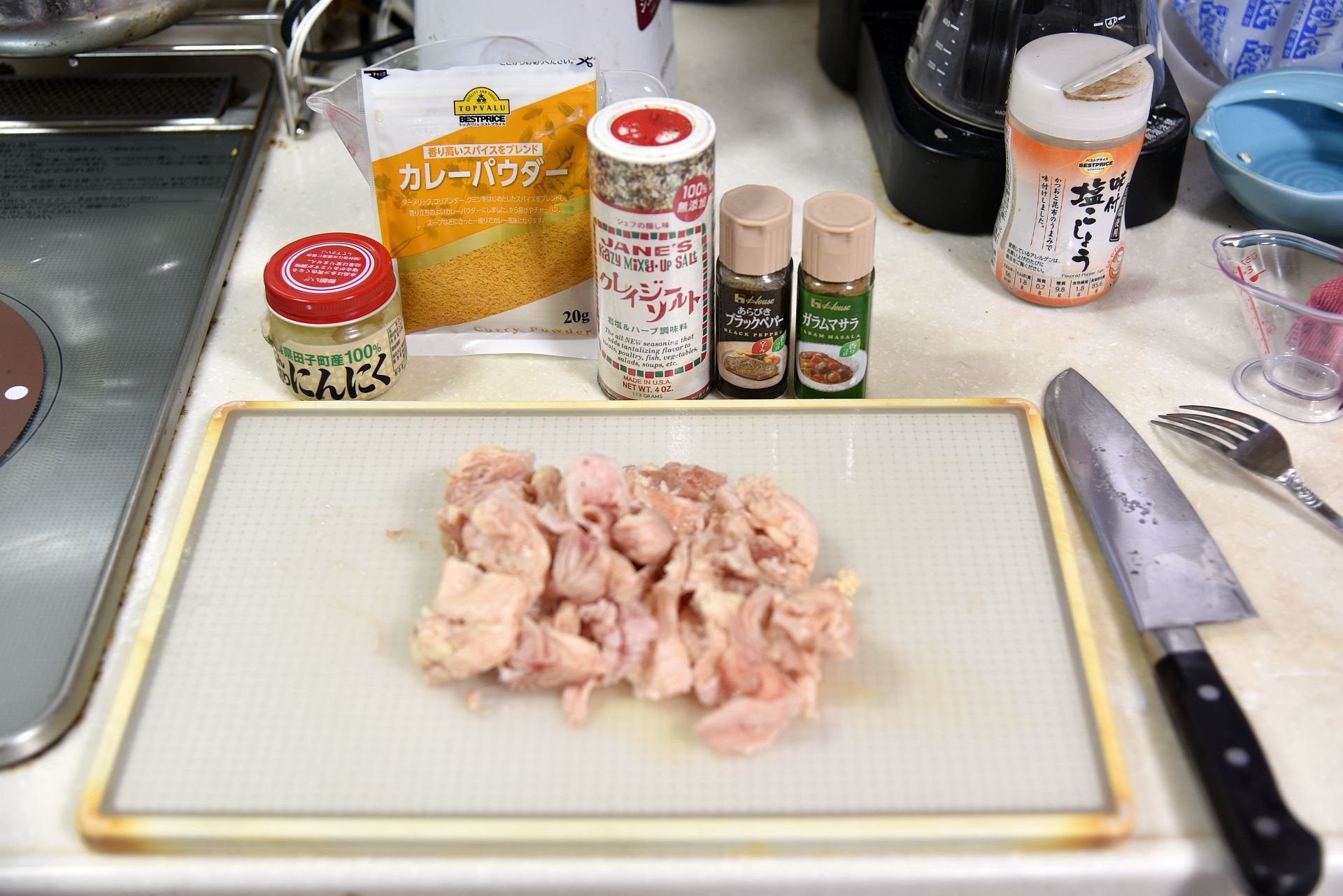 鶏肉は前と同じでカレー粉とニンニク、今回の香りはクミンにしました