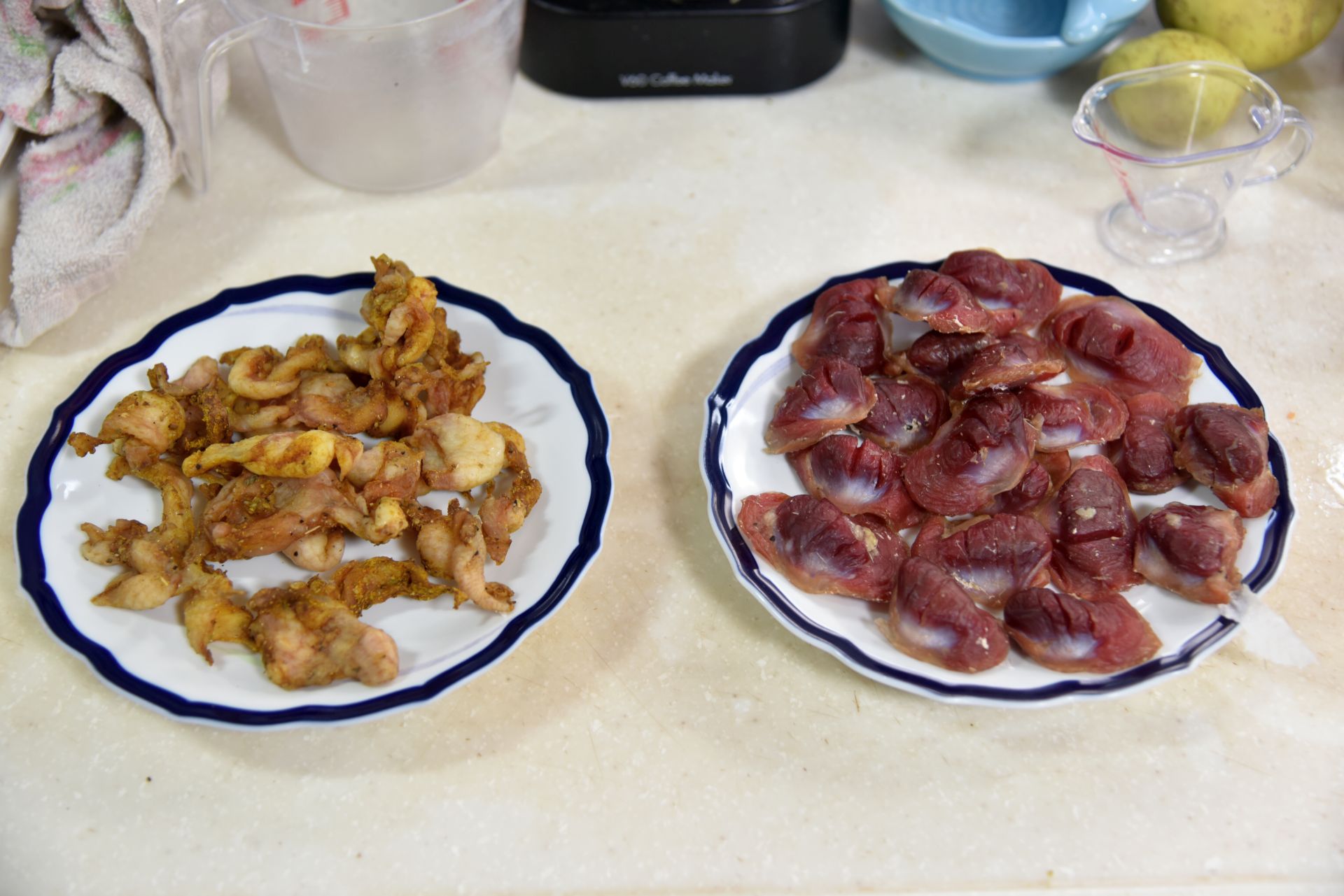 例によって鳥皮はカレー粉、クレイジーソルト中心にして揉みこみます